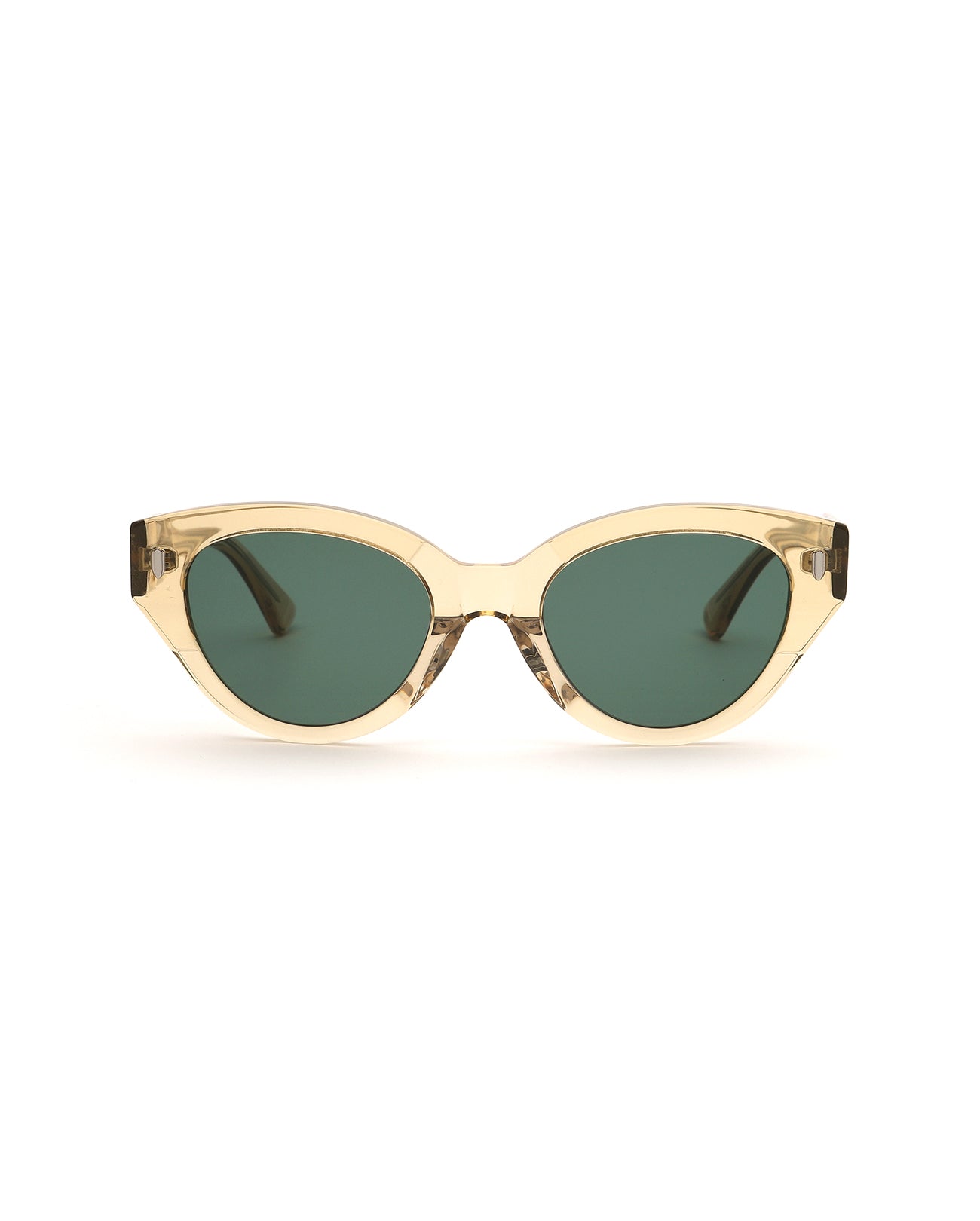 Cat-eye acetate Sunglass frame. A differentiated silhouette is made by the patchwork structure. Its overall feminine shape is perfect for wearing daily.