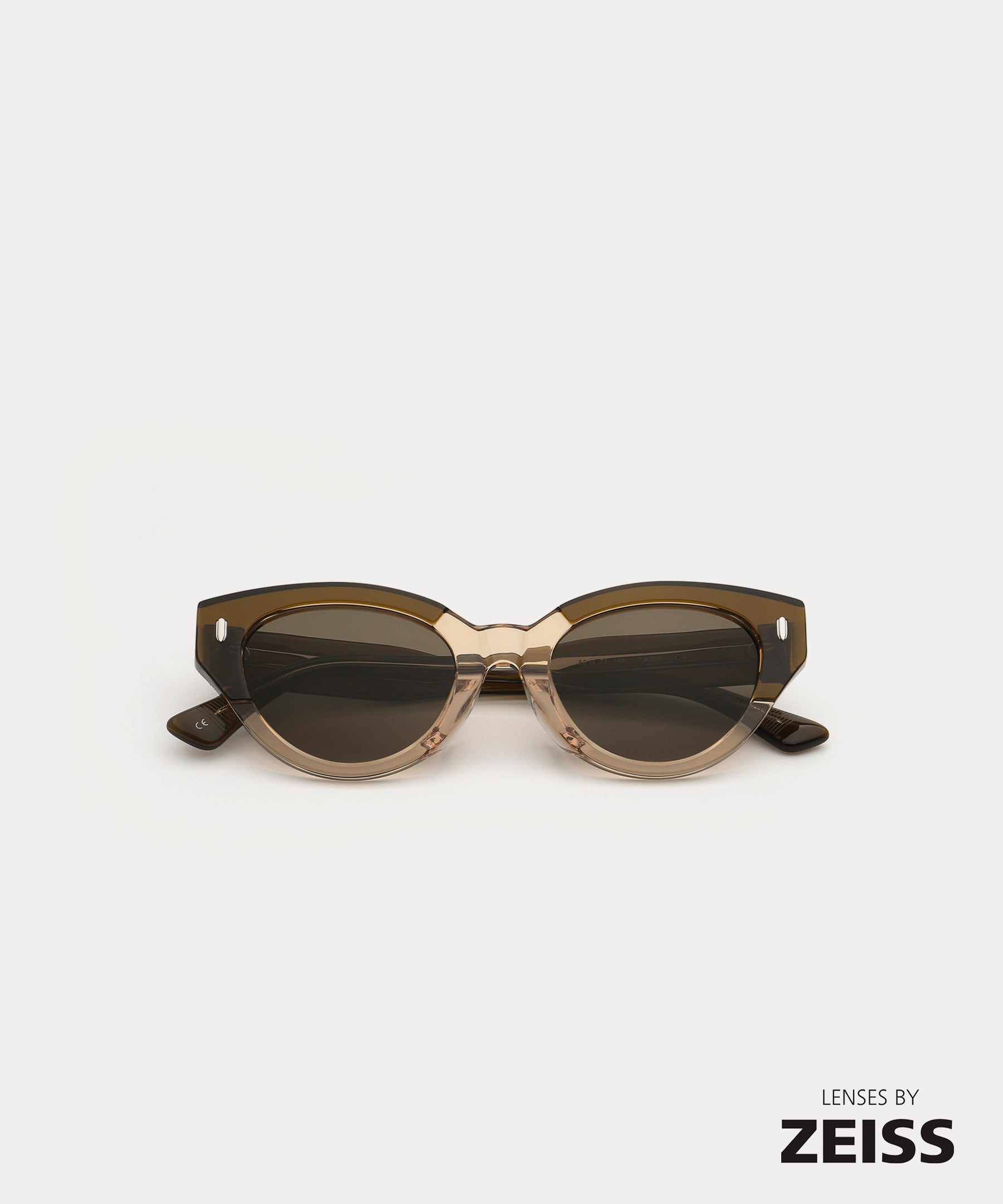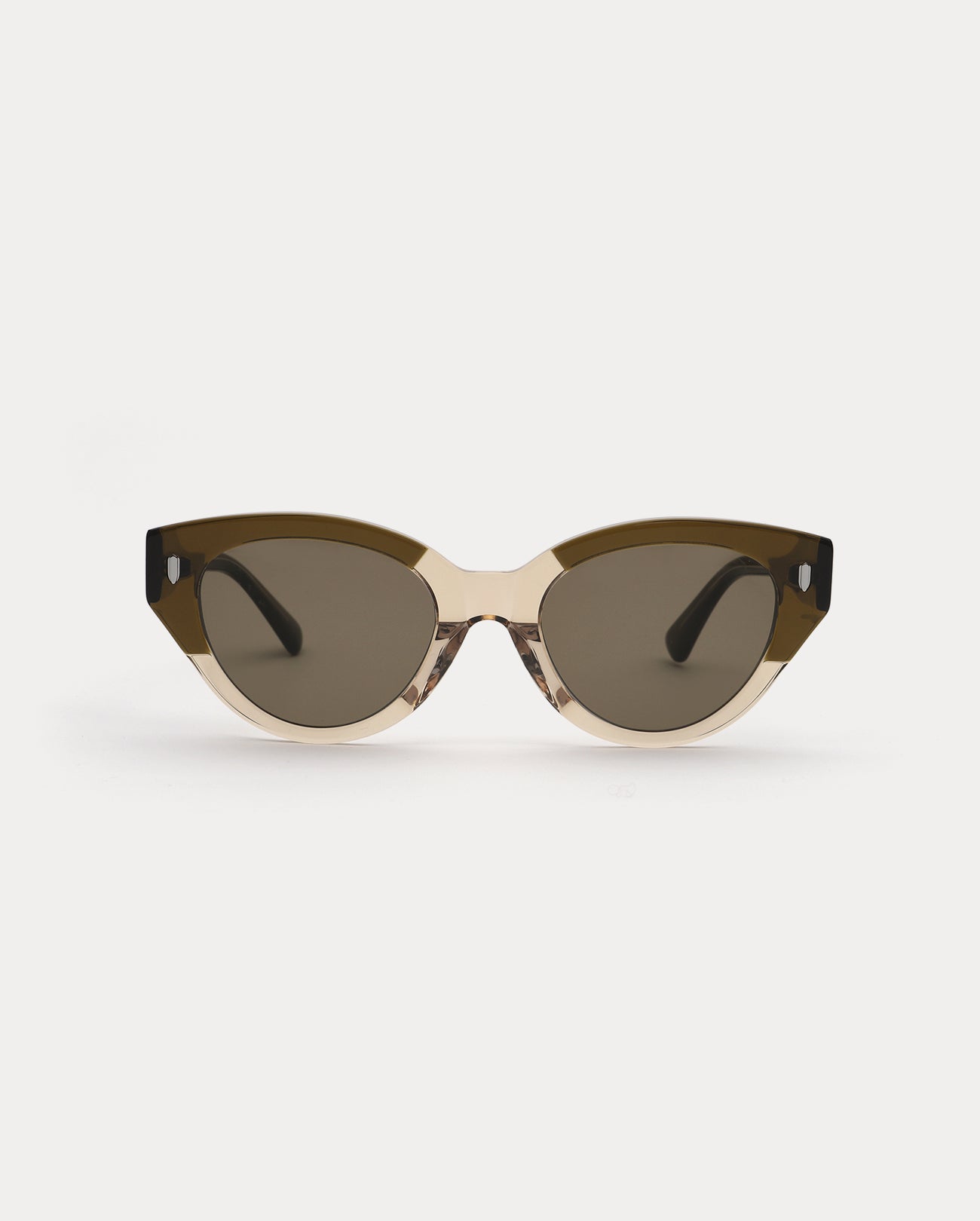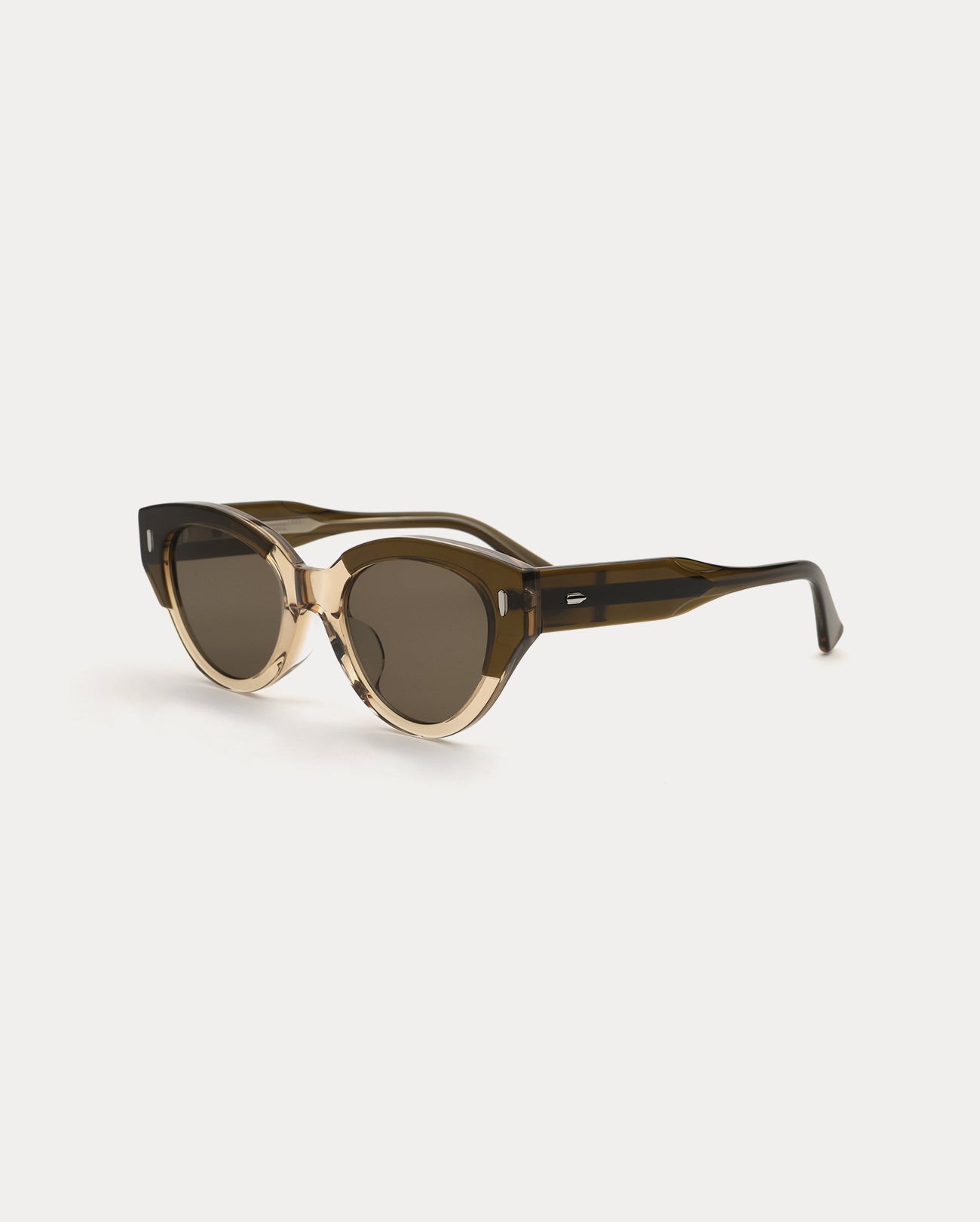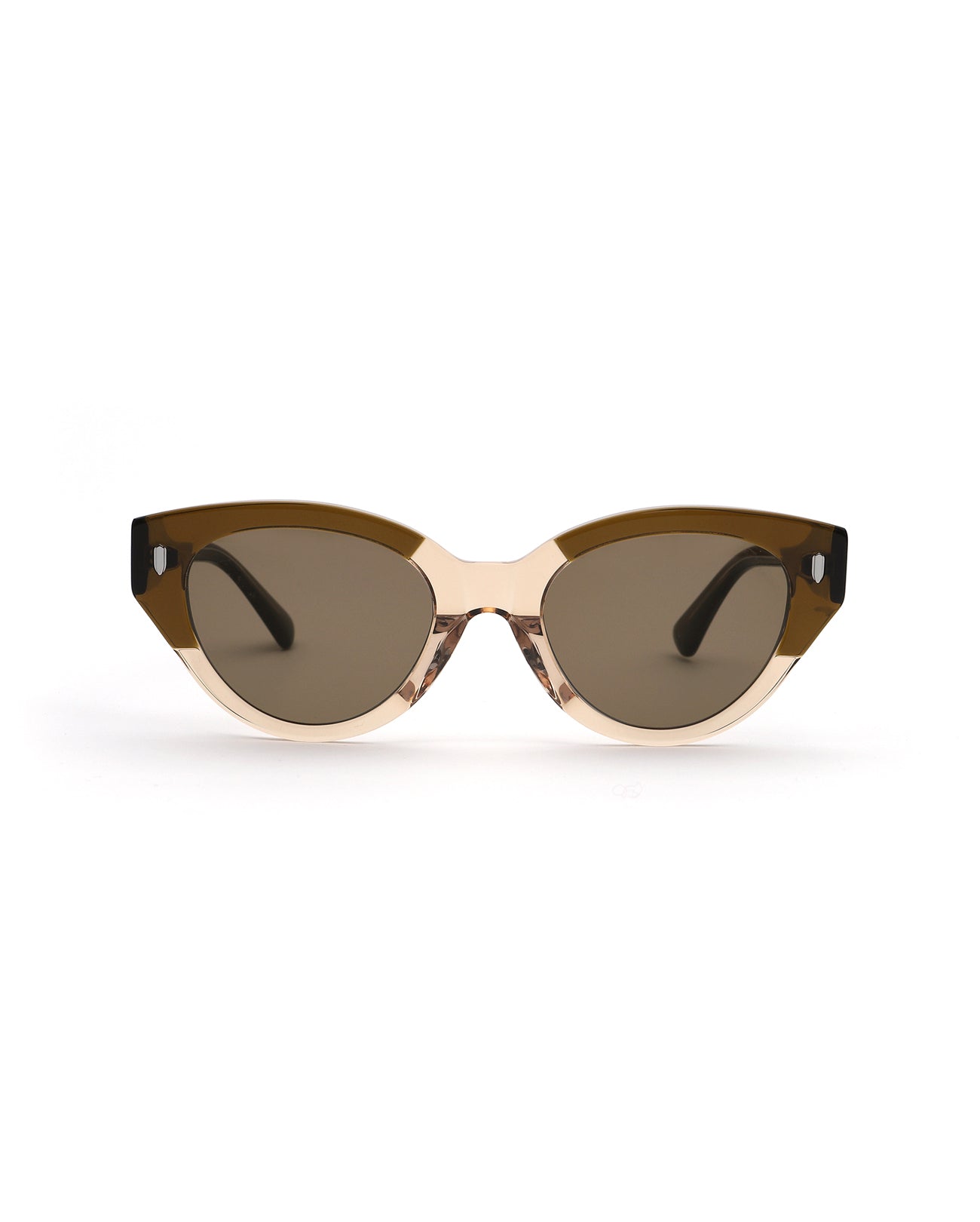 Cat-eye acetate Sunglass frame. A differentiated silhouette is made by the patchwork structure. Its overall feminine shape is perfect for wearing daily.