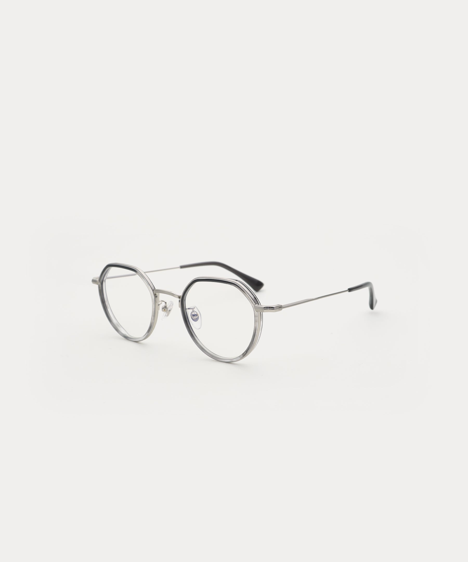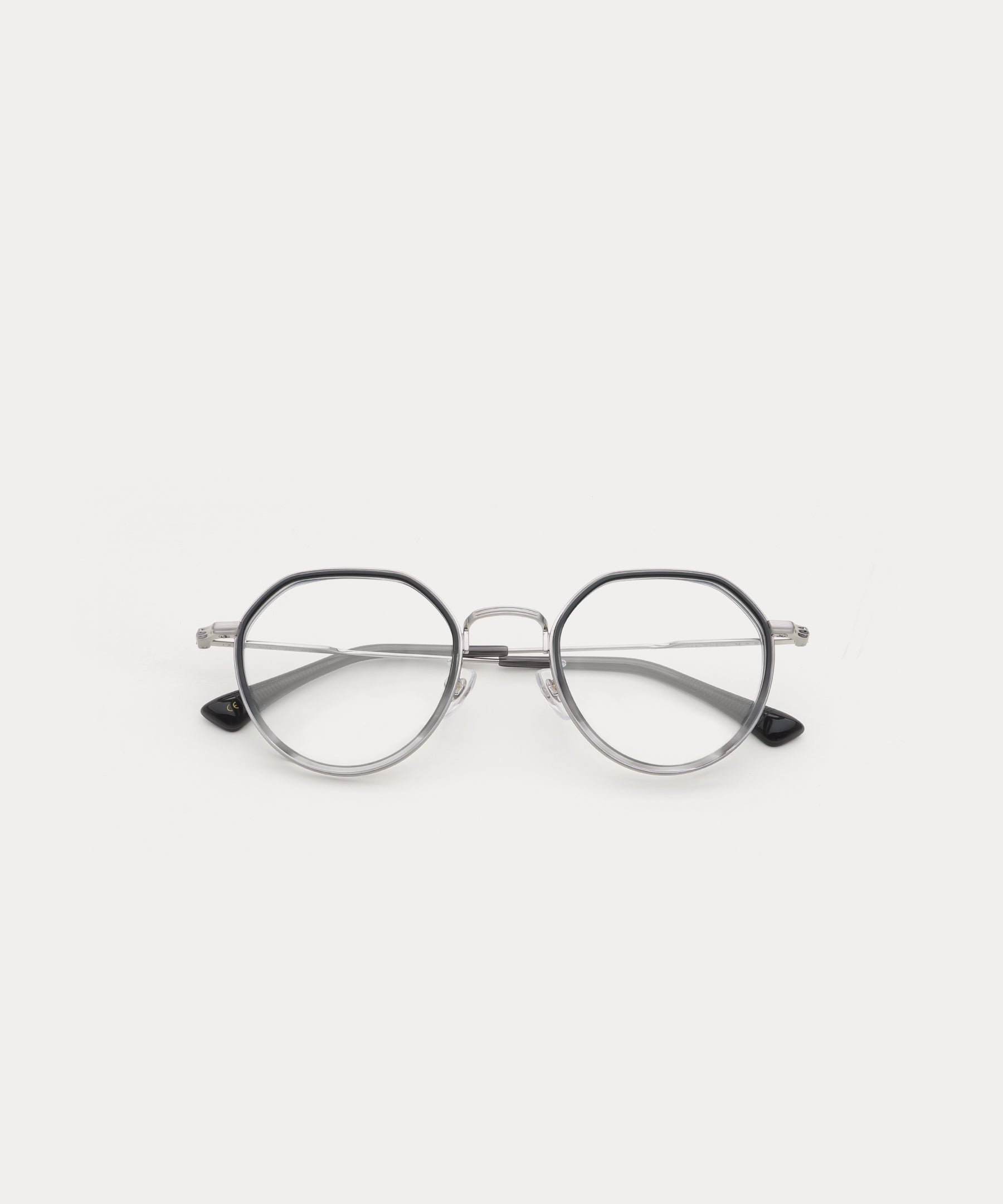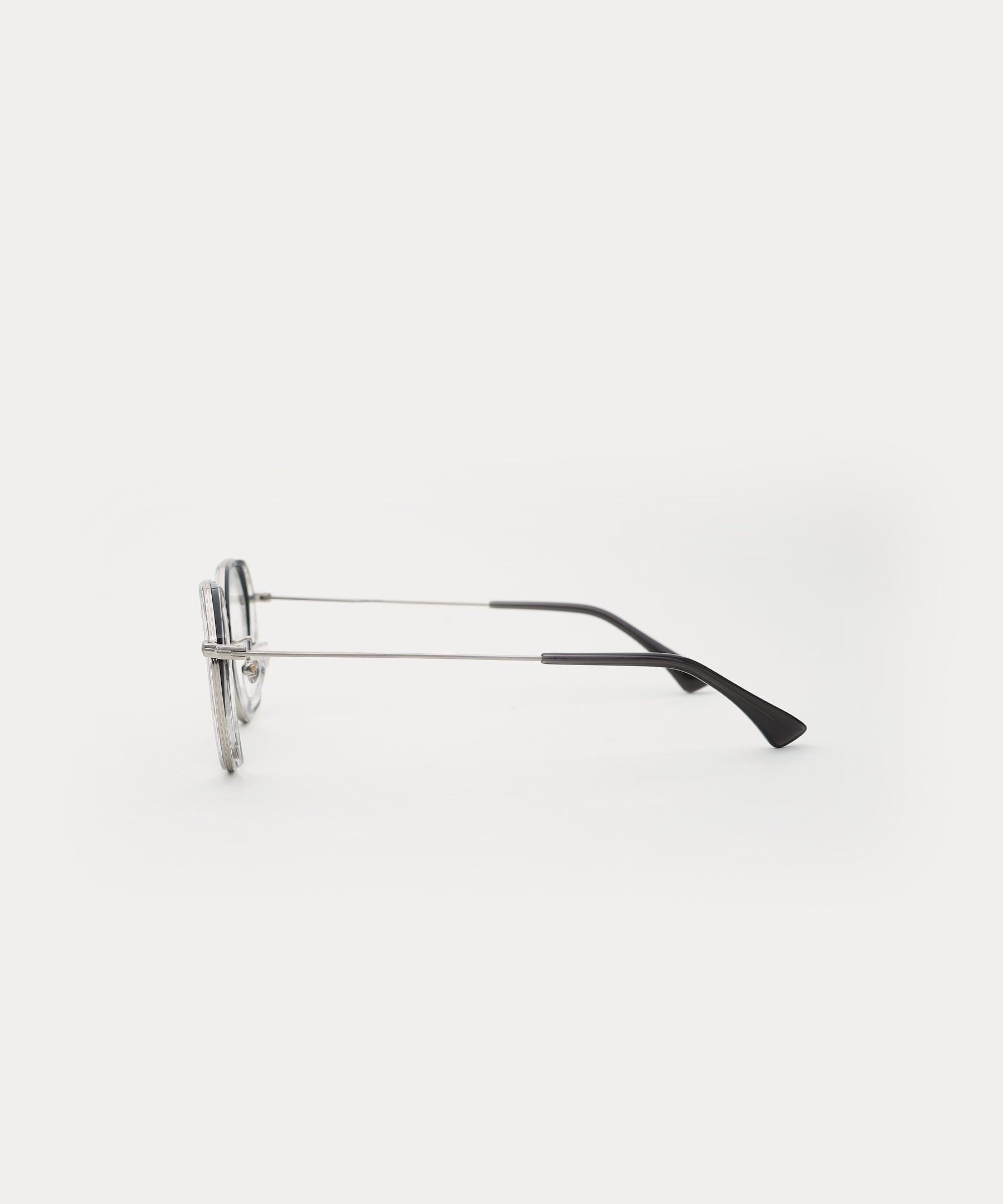 Crown-Panto shape combination spectacle frame. It's easy with the acetate inner rim detail inside the metal rim