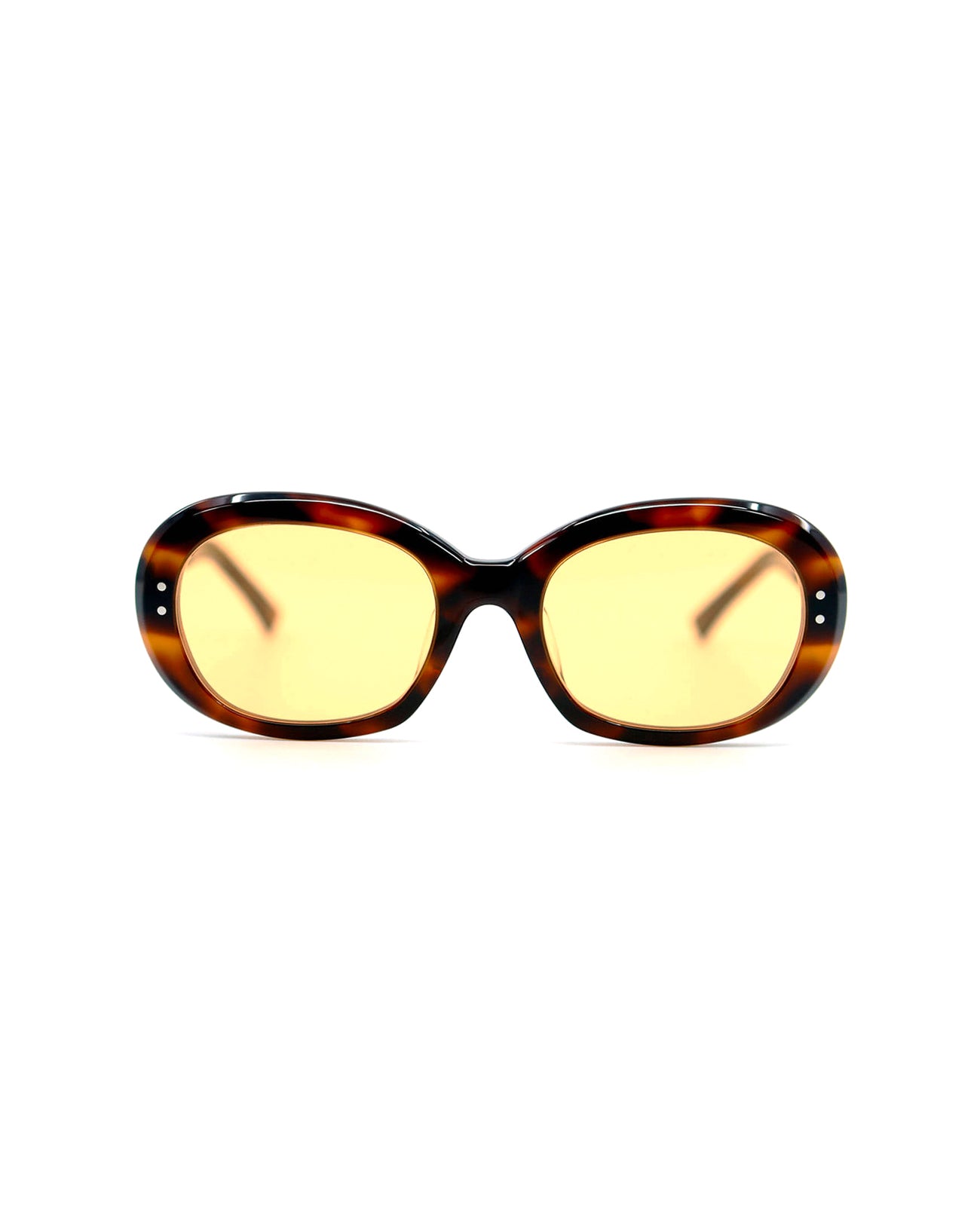 Round acetate sunglass the soft square shape and irregular thickness add indiYiduality. the soft edge finish enhances the volume of the frame