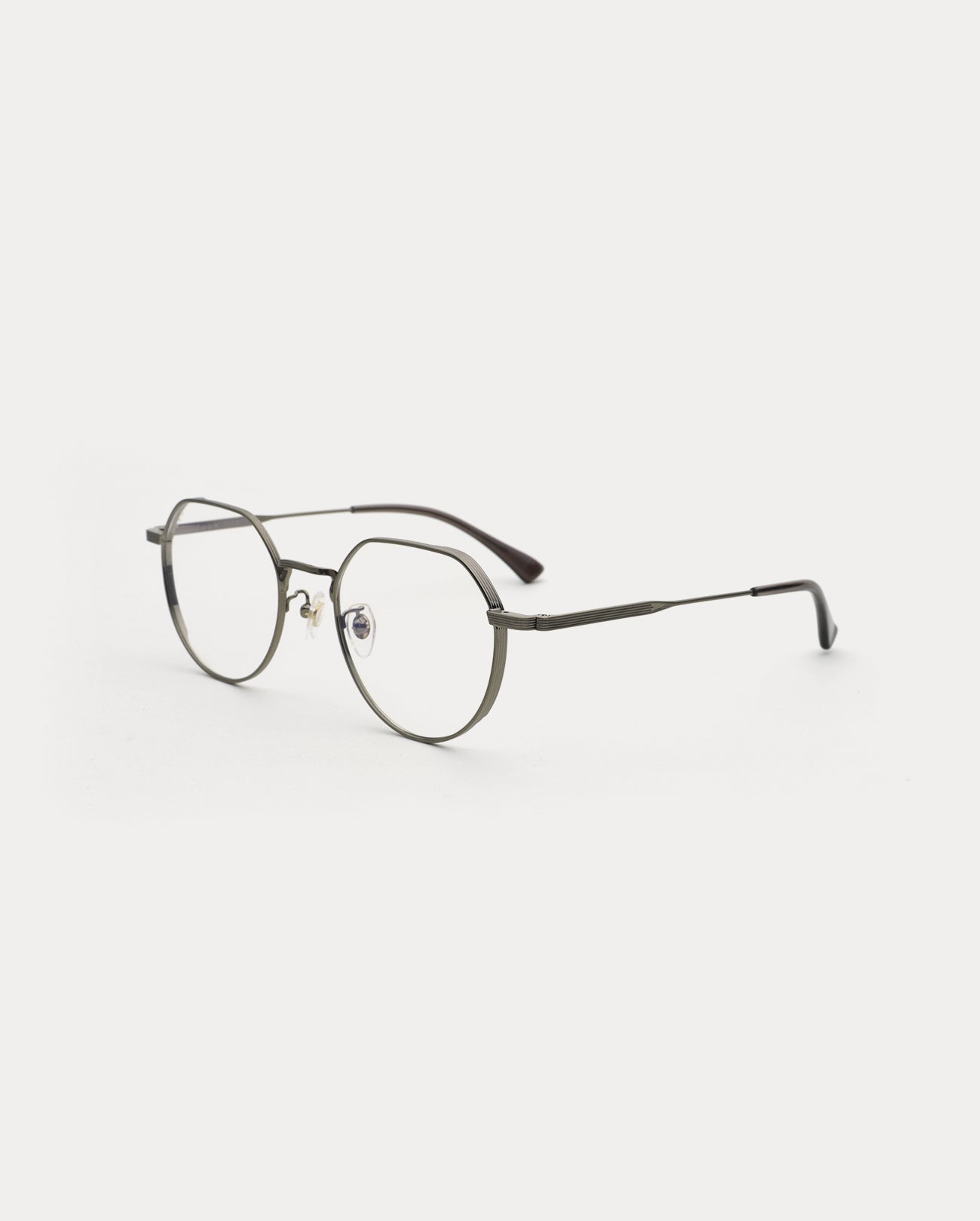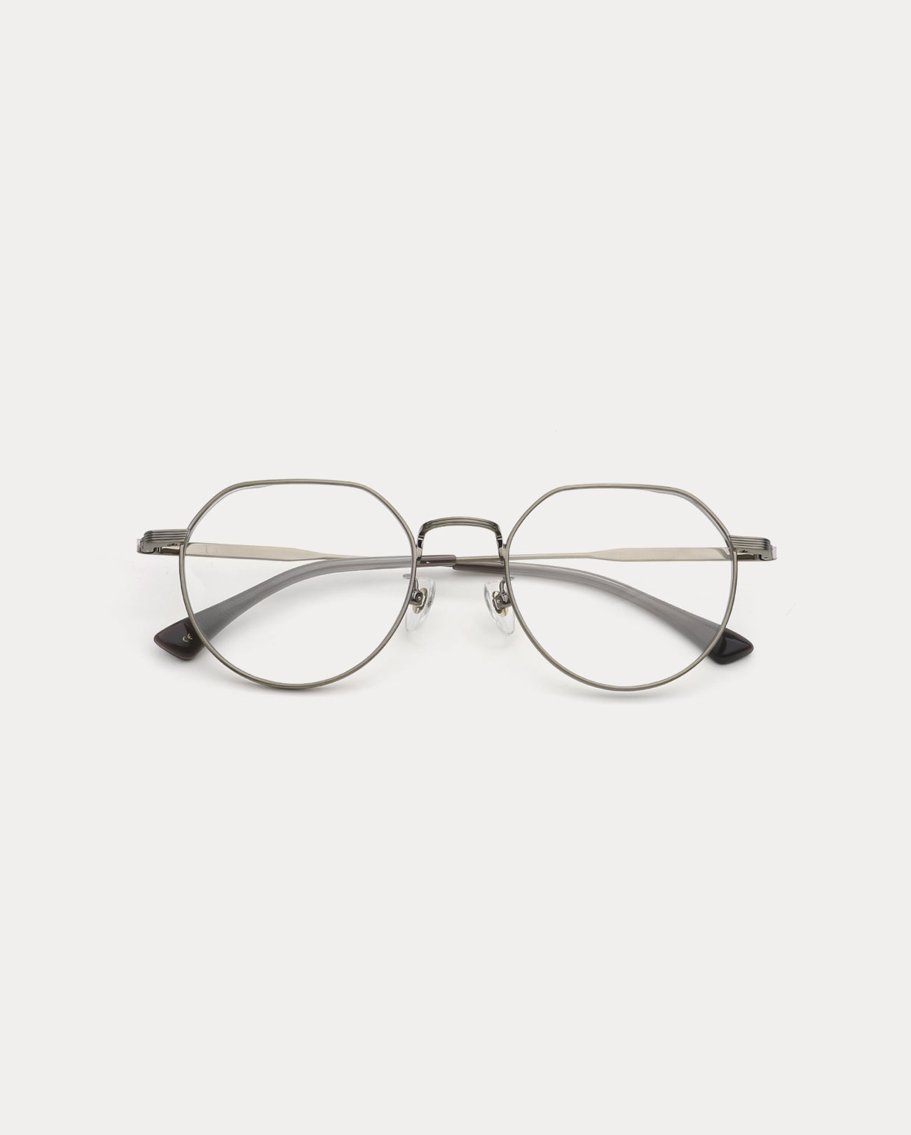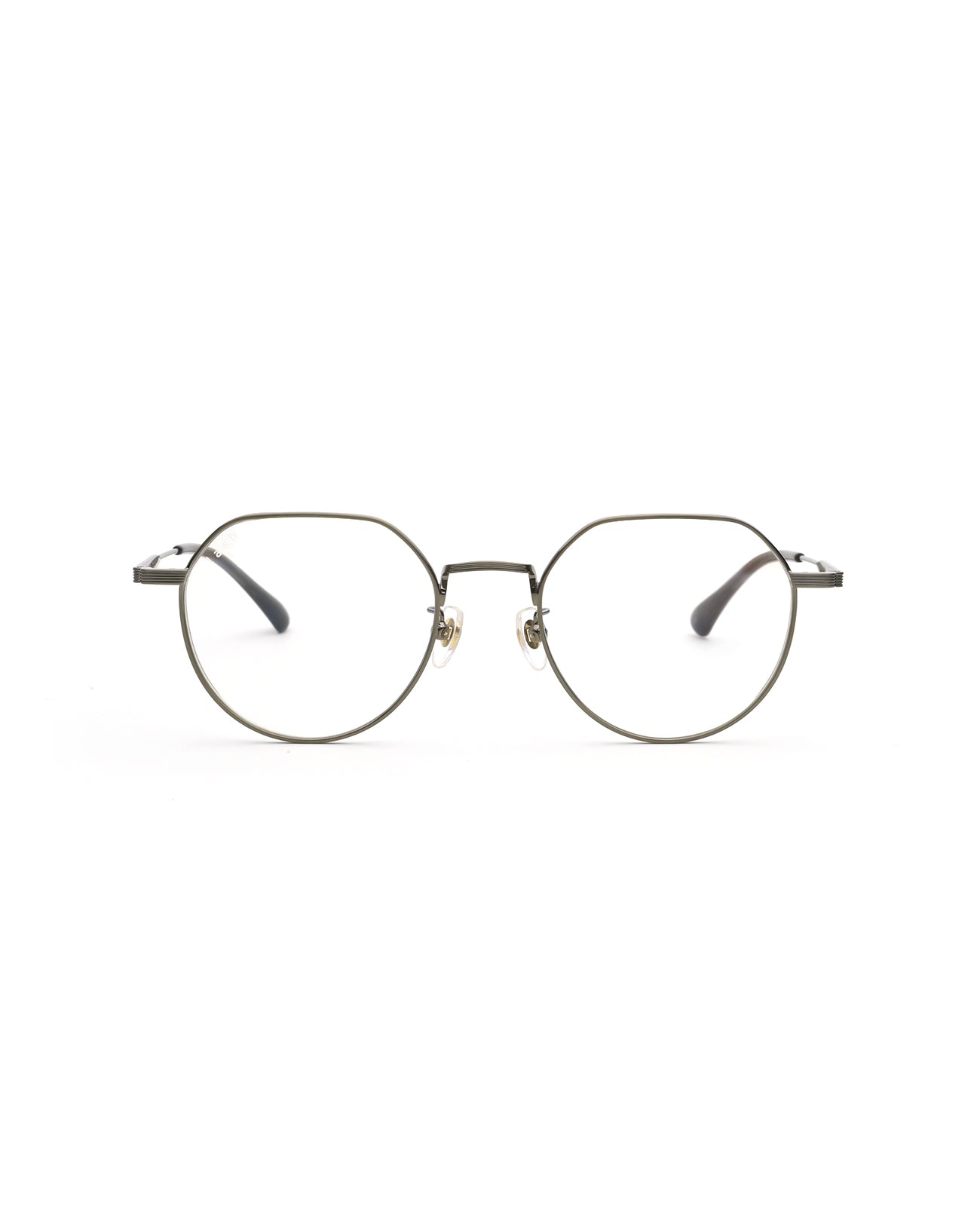 Crown-Panto metal optical frame. The line details applied to the bridge, rim, end piece, and temple are uniform and make the product stand out. The engraved line details applied to the bridge, rims, end piece, and temple are uniform and make the product stand out. The voluminous temple tip balances the weight to provide comfort fitting.