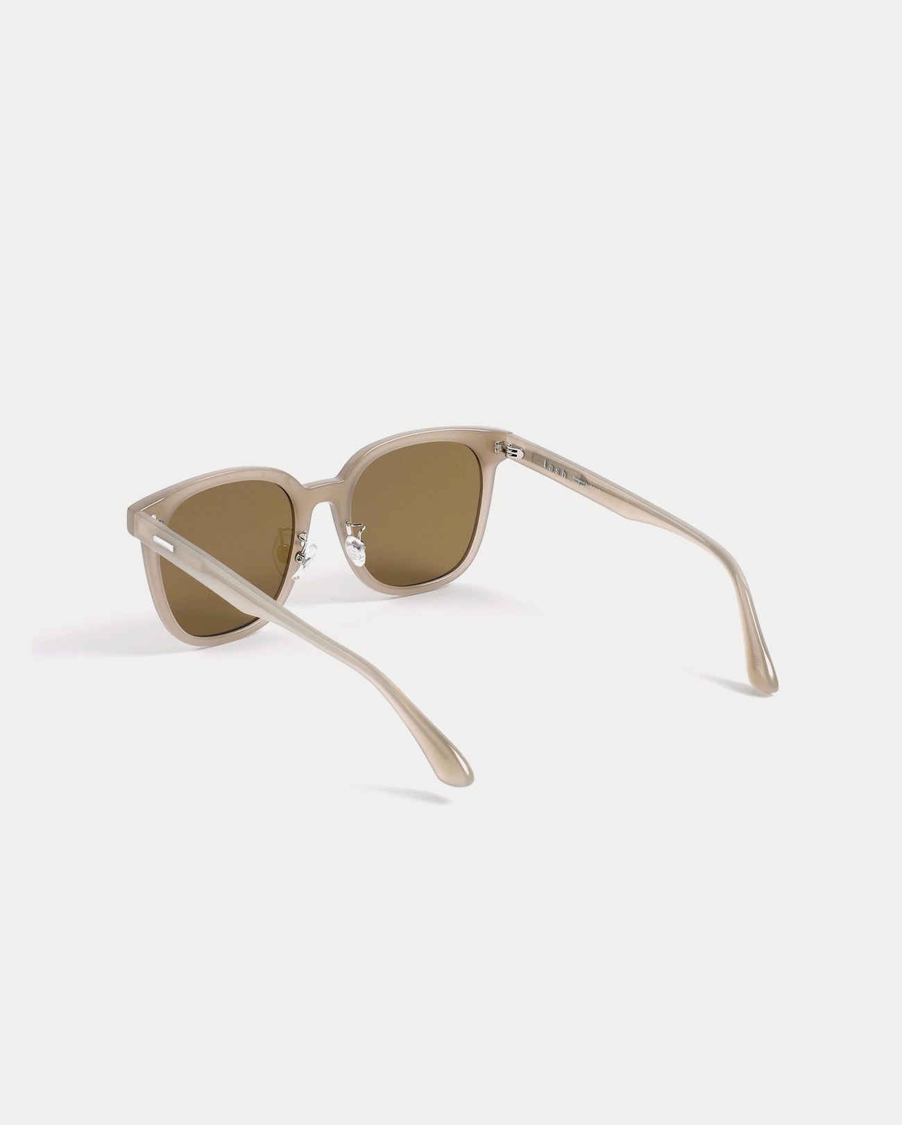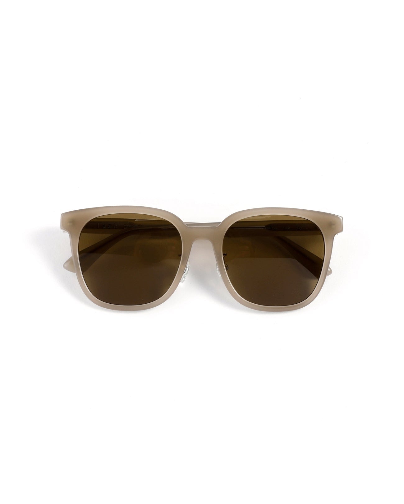 Square acetate sunglass frame. It is oversized, moderately thick, and have a simple silhouette that's well-balanced, with metal detailing on the temples.